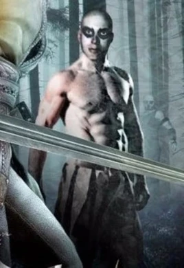 Though nothing is given towards his personal appearance, Holds A Black Lance bore the same fearsome appearance of all his savage clan. Dark-skinned and shaven, Holds A Black Lance's face is painted dead-white, bare his eyes, which are encircled with black, and cheek hollows, giving him the look of a skull in uncertain lighting. Bare-chested, Black Lance is clad waist-down in deer-hide leggings and soft moccasins.